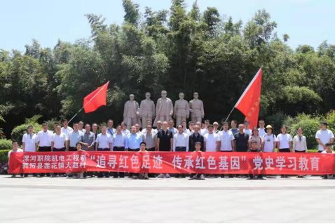 为迎接建党100周年,深入开展党史学习教育, 5月22日m88官方网站机电工程系党总支部与舞阳县莲花镇大赵村党支部共同开展了“行走的党课——追寻红色足迹、传承红色基因”活动。来自高校的党、团员和结对共建村的党员干部一起参观了驻马店确山竹沟革命纪念馆、舞钢市虎头山革命烈士陵园,举行了向革命先烈敬献花篮、重温入党誓词、唱红歌、讲红色故事等活动。通过开展主题教育实践活动,聆听革命事迹介绍,引导广大党、团员更好地传承红色基因,弘扬革命精神,坚定理想信念。这次活动内容丰富、形式多样、精彩纷呈,收到了良好的教育效果。公司党委副书记薛存心同志全程参与了活动。