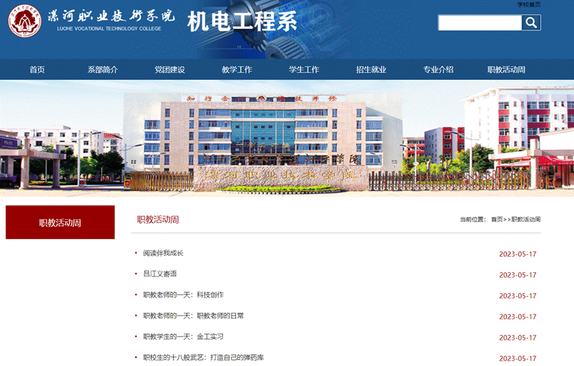线上展示活动在机电工程系网站职教活动周板块进行,分为职教生十八般武艺、职教师生的一天、技能成才强国有我、员工寄语四个板块,全方位展示智能制造产品的制作流程和职教师生的风采风貌,2011届优秀毕业生吕江义也对学弟学妹提出了殷切的期望。