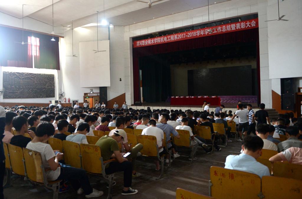 6月13日下午,m88官方网站机电工程系2017-2018学年工作总结暨表彰大会在院大礼堂召开。系领导班子成员和全系师生参加了会议。