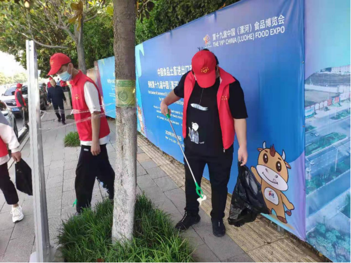 活动中,青年志愿者们拿着垃圾钳、垃圾袋等清洁工具,专心致志地巡查,不放过任何一处垃圾,把绿化带里的落叶和烟头都捡拾起来放在垃圾袋中。经过努力,道路及展区的垃圾有效减少,环境保持干净整洁。