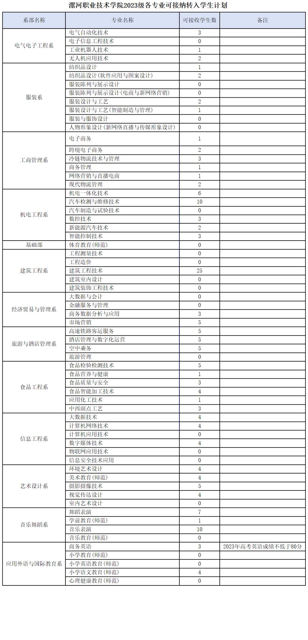 为充分调动员工学习的积极性和主动性,提升人才培养质量,有利于员工个性发展和特长的发挥,按照《m88官方网站员工转专业管理办法》(漯职院政发〔2022〕136号),根据各专业教学资源状况,现将各专业可接纳转入员工计划数,予以公布。